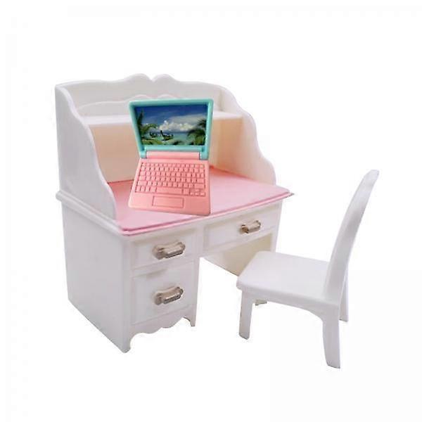 2-6pack Dollhouse Miniature Desk Chair for Living Room Decor With Green Laptop