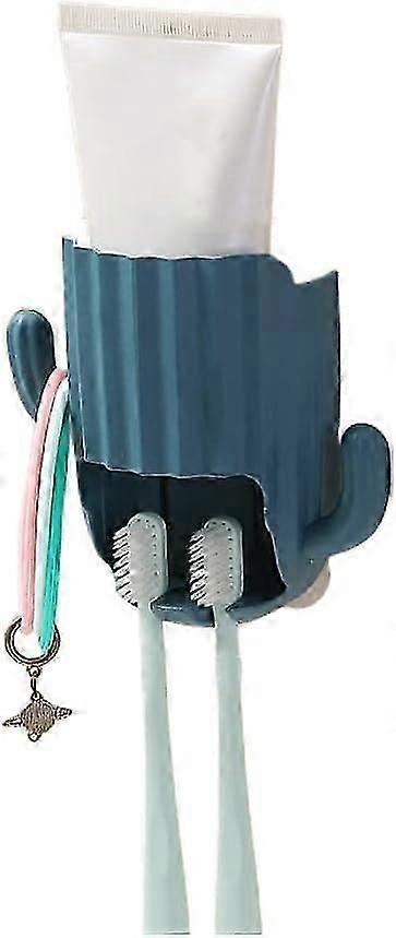 2 in 1 Cute Toothbrush Toothpaste Holder Kids Suction Cup Cartoon Razor Drainage Organizer with Hooks for Bathroom, Mirror, Dresser Countertop (Blue)