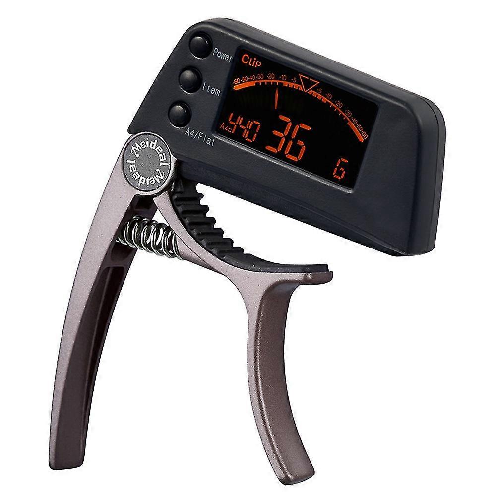 2-In-1 Electric Digital LCD Electronic Guitar Tuner And Capo Clip-on Acoustic Bass Tuner Tone Generator For Guitar/ Ukulele/ Banjo (Coffee)
