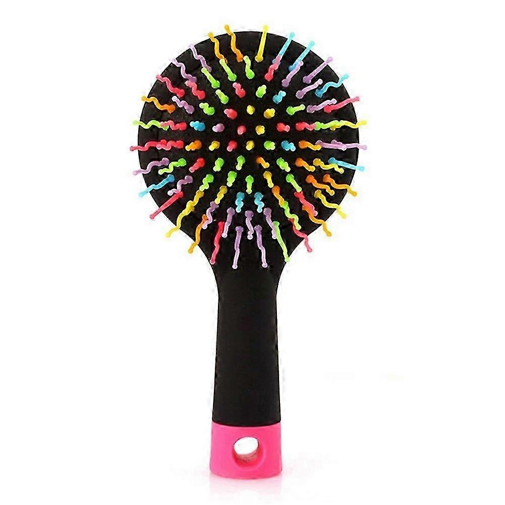 2 in 1 Girl Rainbow S-Curl Wave Brush Mirror Comb Anti-static Massage Hairbrush QinHai