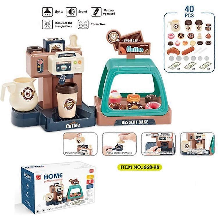 2 in 1 Kids Pretend Role Play Toy Coffee Shop with Coffee Maker Machine and Donuts