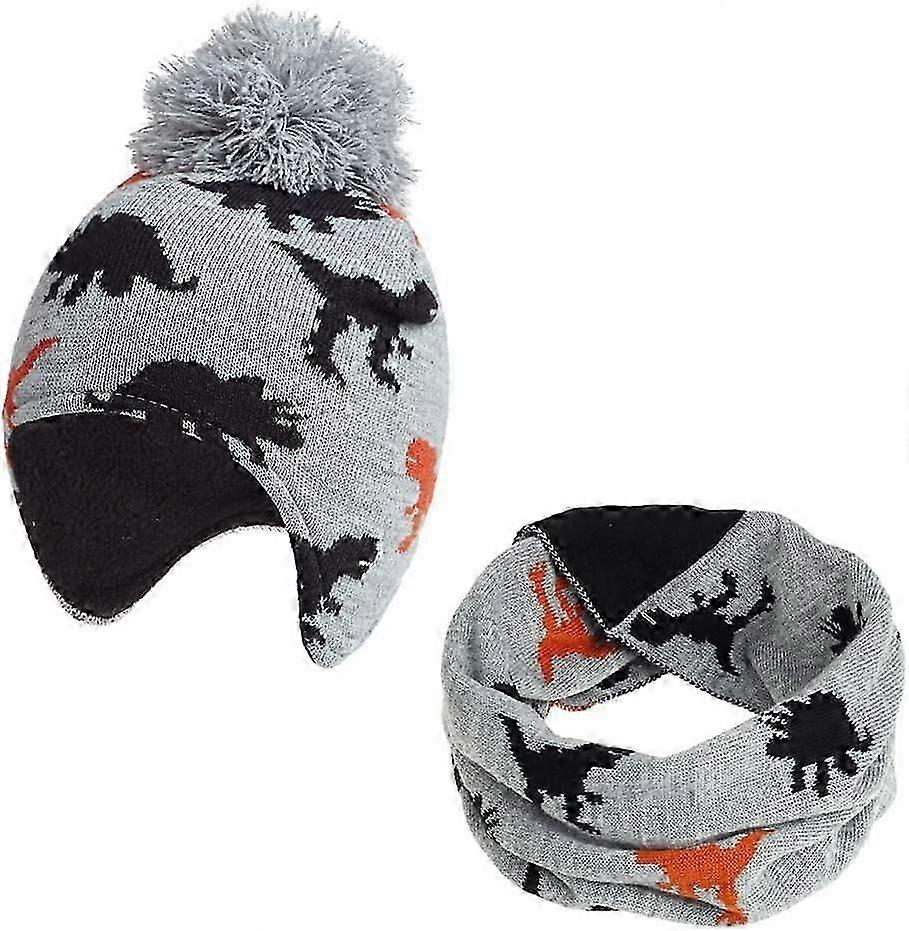 2 in 1 Kids Hat and Scarf Winter Warm Thick Fleece Lining Knitted Hat Neck Warmer, Thermal Hat Elastic Neck Warmer for Baby, Girl, Boy