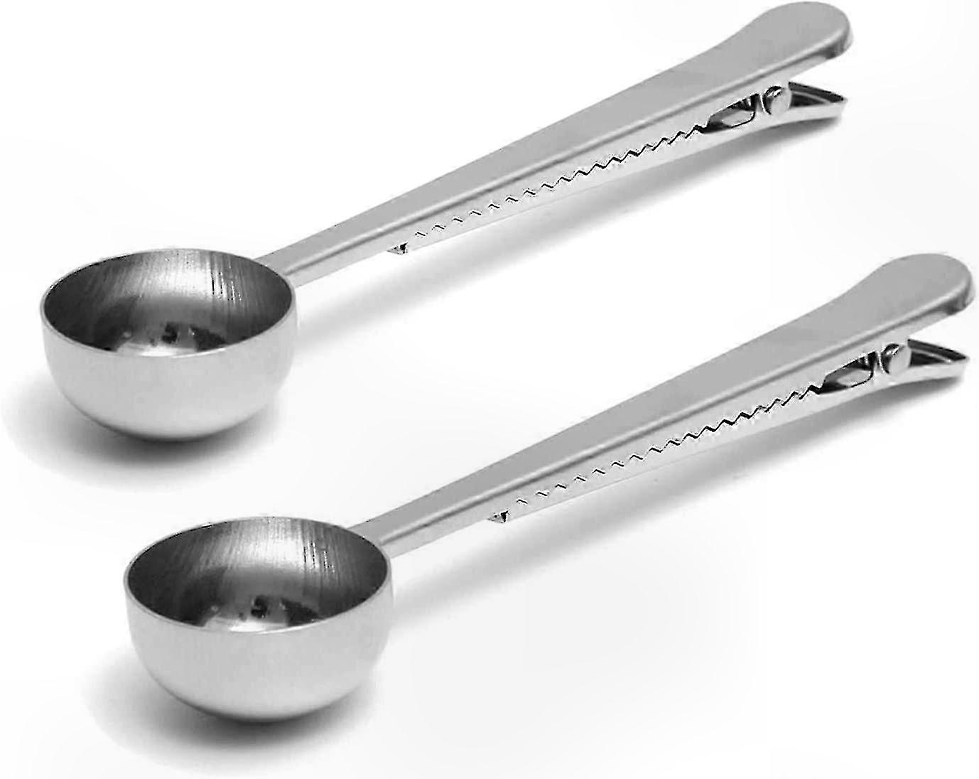 2-in-1 Coffee and Tea Measuring Spoon with Ziploc Bag Clip, Stainless Steel, Set of 2 Suitable for Various Brands