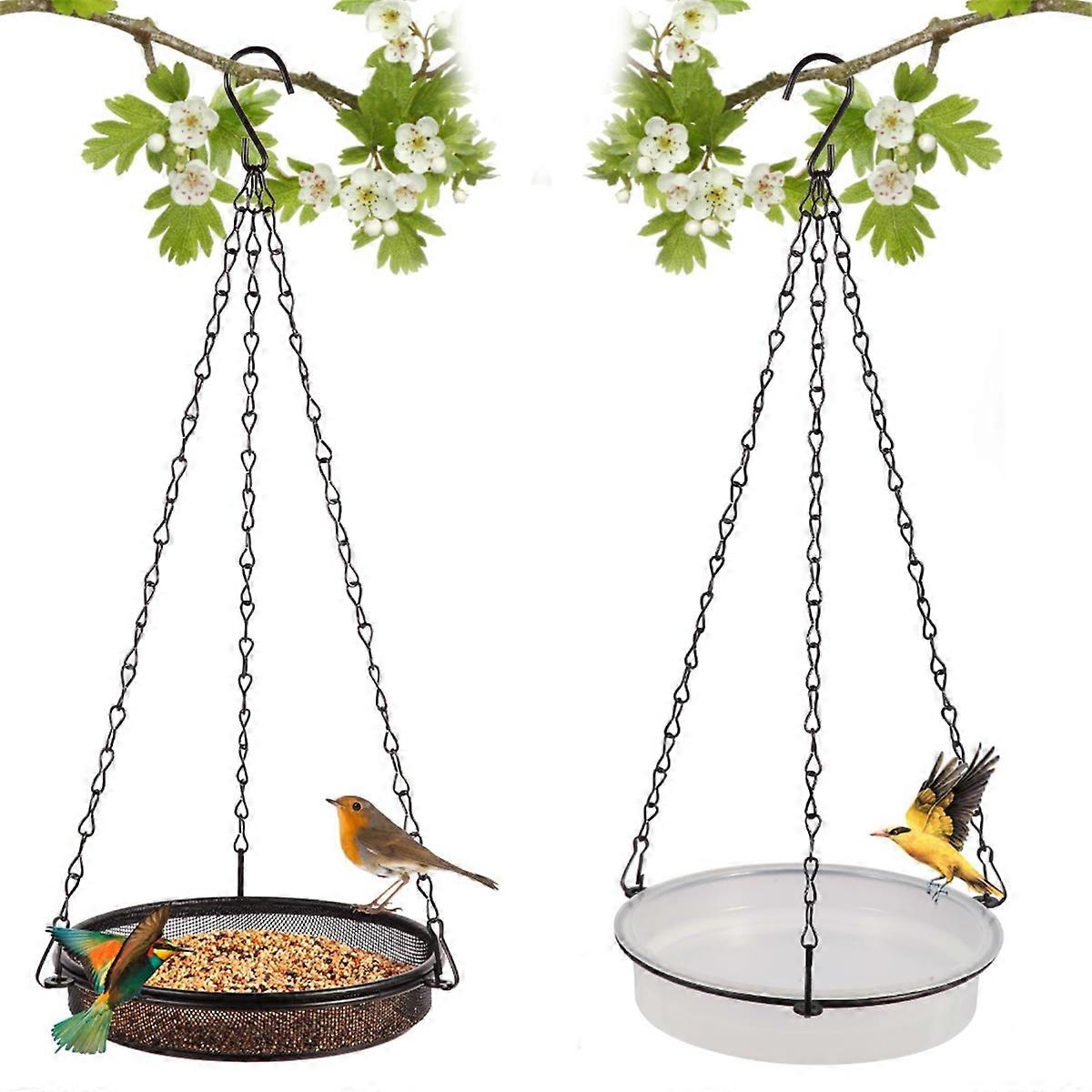 2-in-1 Set Hanging Bird Feeder and Bath for Outdoor, Small Metal Tray Perfect for Attracting Bird