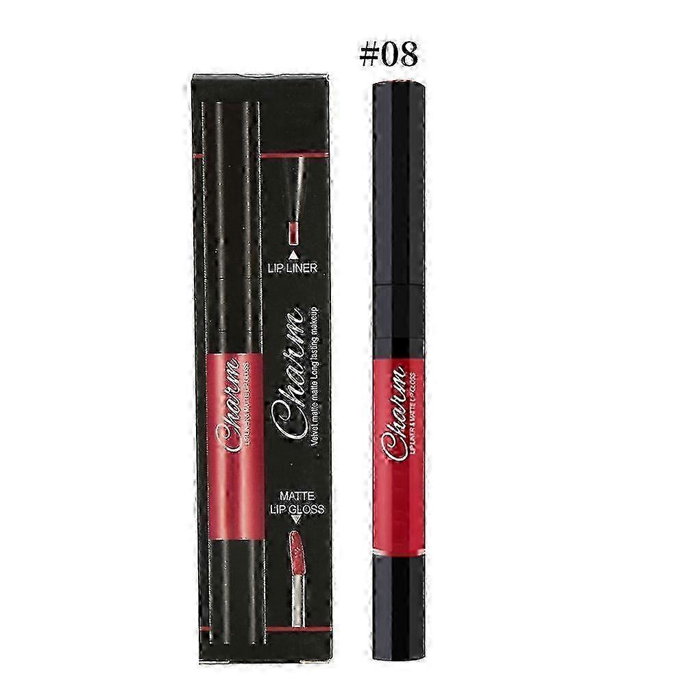 2 In 1 Double End Lip Glaze Lip Liner Long Lasting Liquid Lipstick Makeup Cosmetic Tool 08#