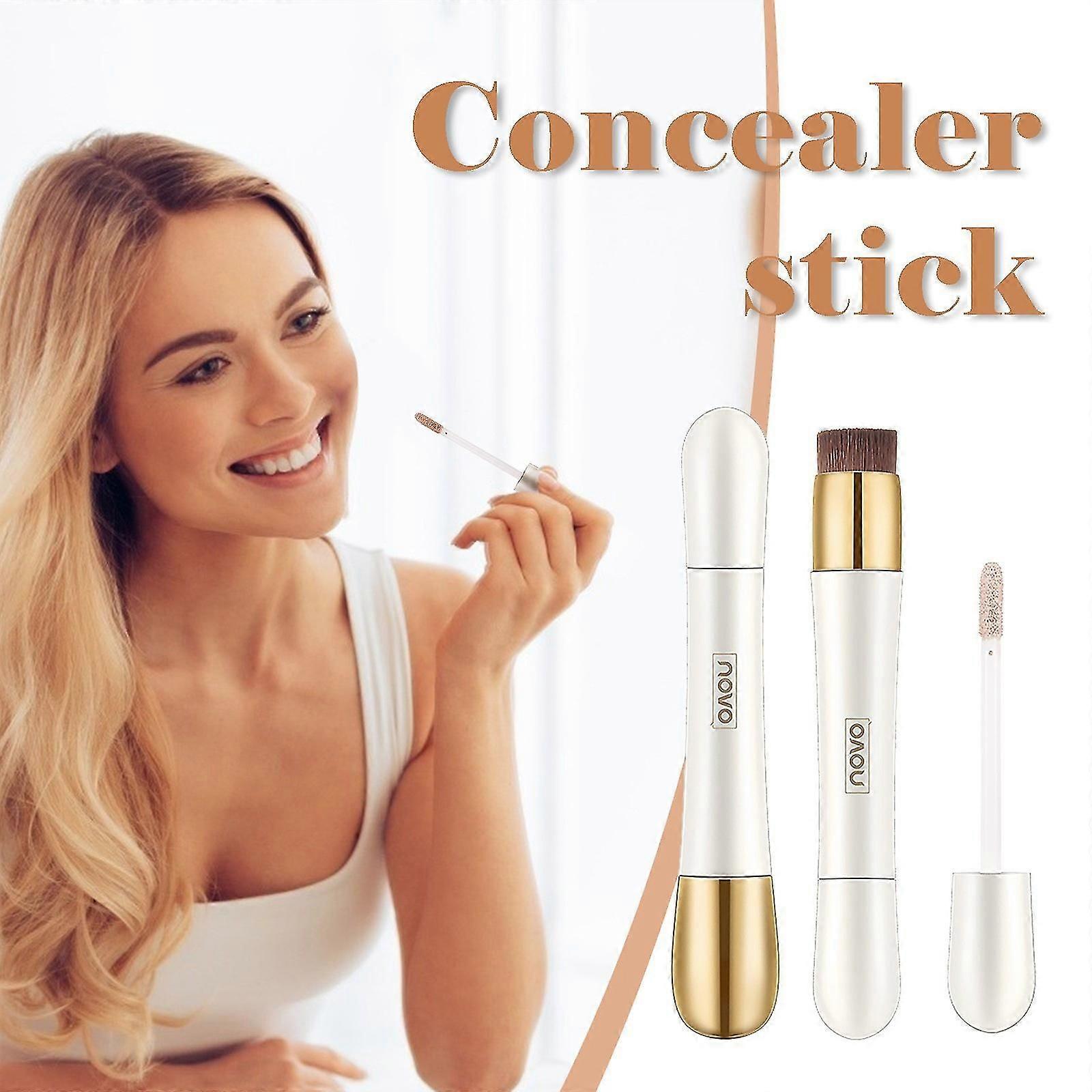 2 In 1 Wrinkle Concealer Stick With Built-In Brush High Coverage Matte Liquid Concealer Non-Creasing Lightweight Face Concealer