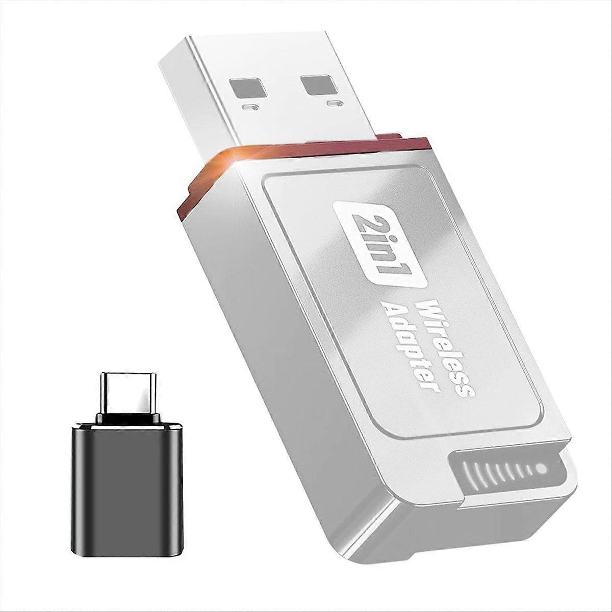 2-in-1 Wireless CarPlay Adapter Support CarPlay&for Android Auto,Bluetooth USB Dongle Convert Wired