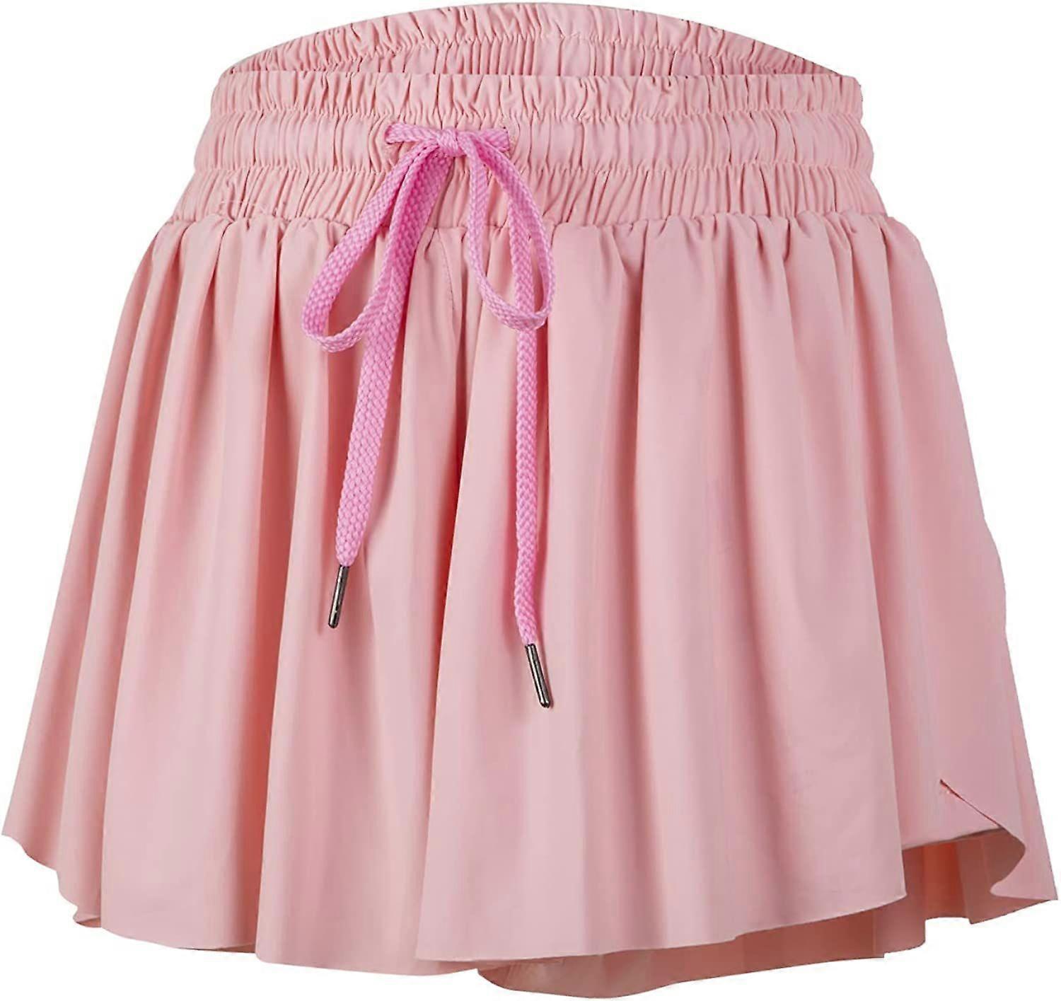 2 in 1 Flowy Running Shorts for Women Gym Yoga Athletic Womens Workout Biker Spandex Lounge Sweat Skirt Summer (Light Pink)