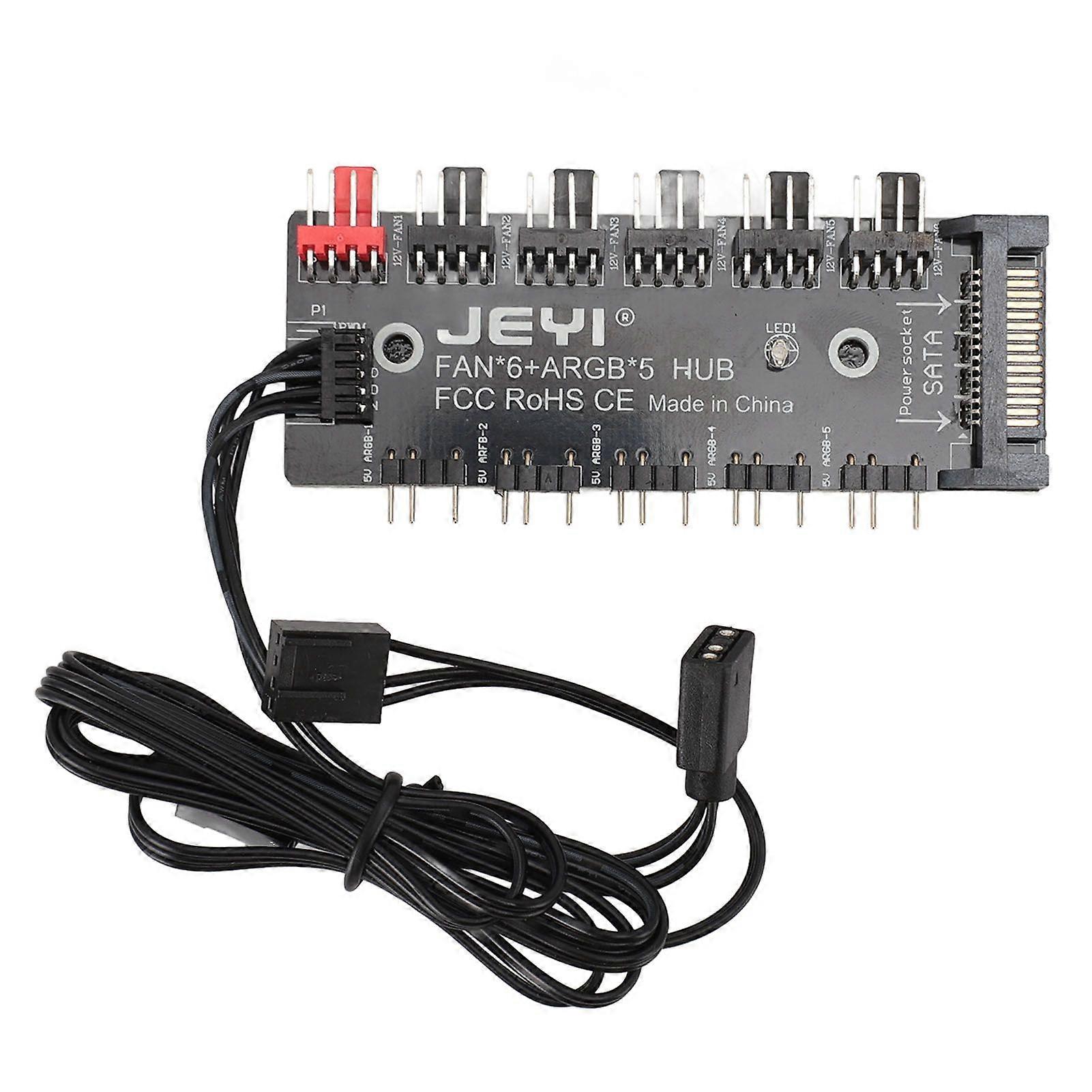 2 in 1 Hub Splitter 5 5V 3PIN ARGB Ports 6 12V 4PIN PWM Ports 15PIN SATA Power Supply CPU Chassis Cooling Fan Hub