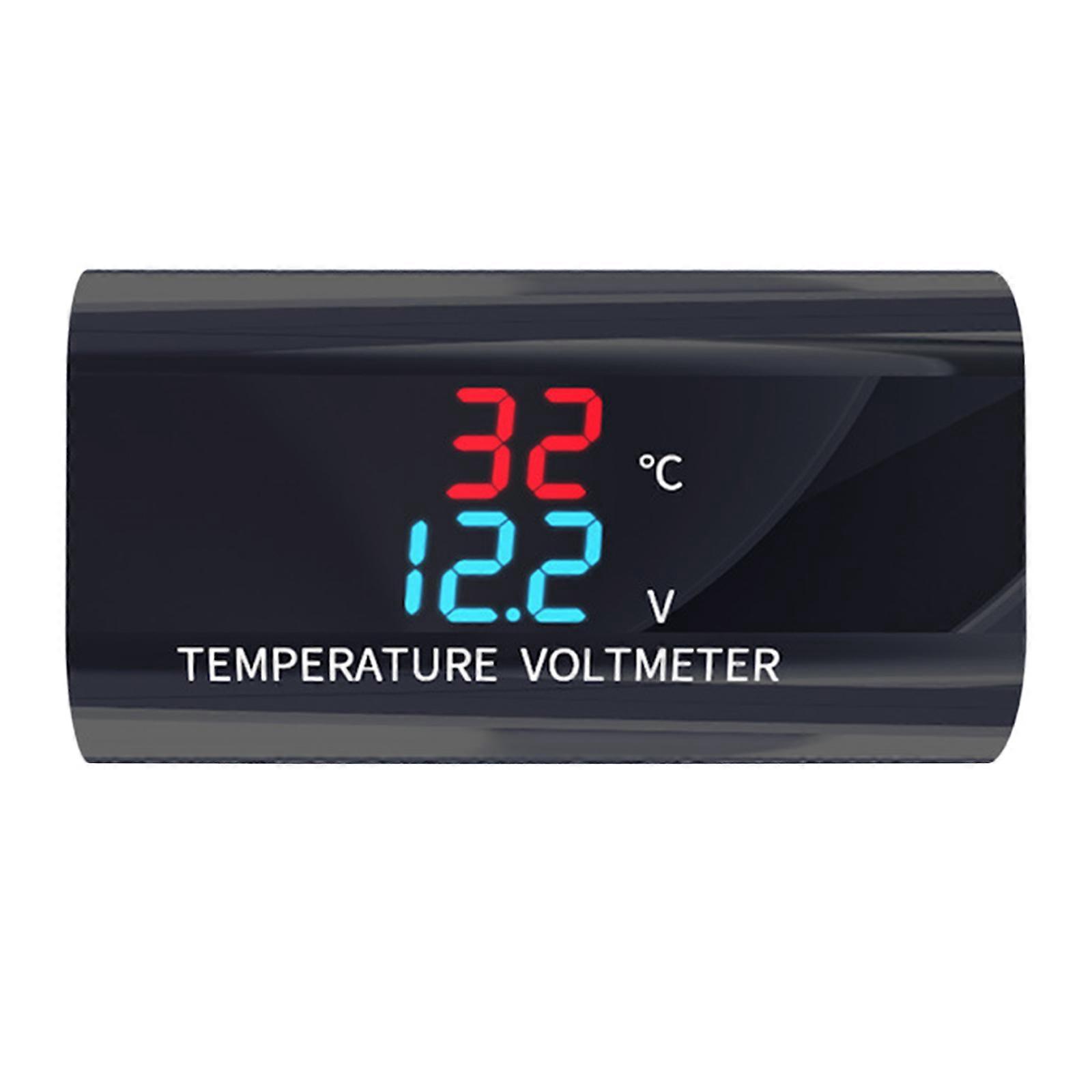 2 In 1 12V DC LED Waterproof Display Voltmeter Panel Meter Temperature Monitor