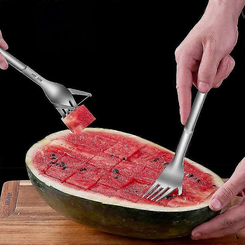 2 In 1 Watermelon Slicer And Knife Stainless Steel Fruit Cutting Fork Melon Chunk Cutting Tool Kitchen Gadgets