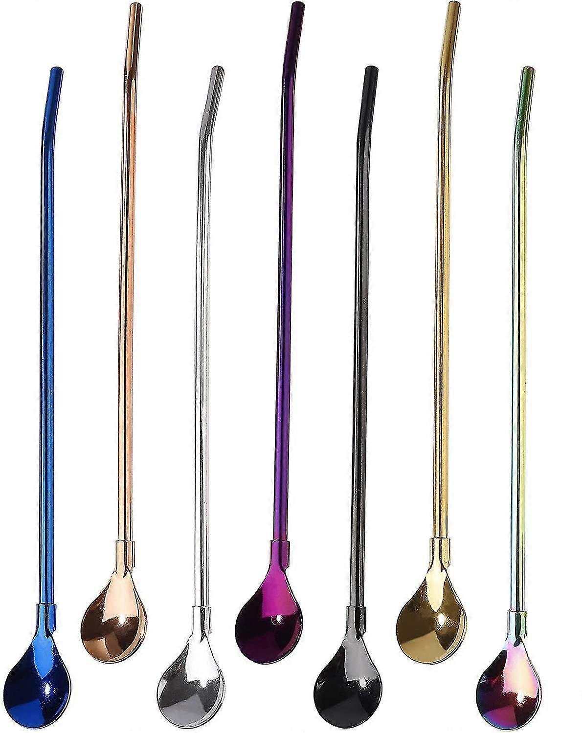 Straws Spoons Reusable Stainless Steel Drinking Straws Spoons 2 In 1 Metal Spoon Straws Suitable For Smoothies Milkshakes Cocktail Coffee