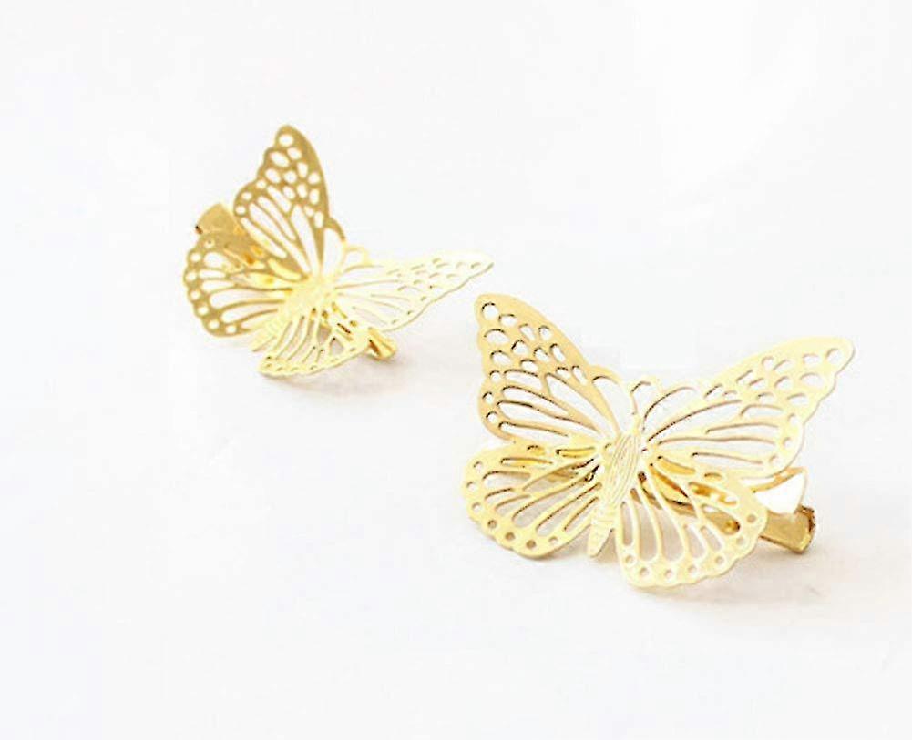 2 Pcs Gorgeous Golden Hollow Butterfly Hair Clip,a Left And A Right Cute Hair Accessories For Women And Girls