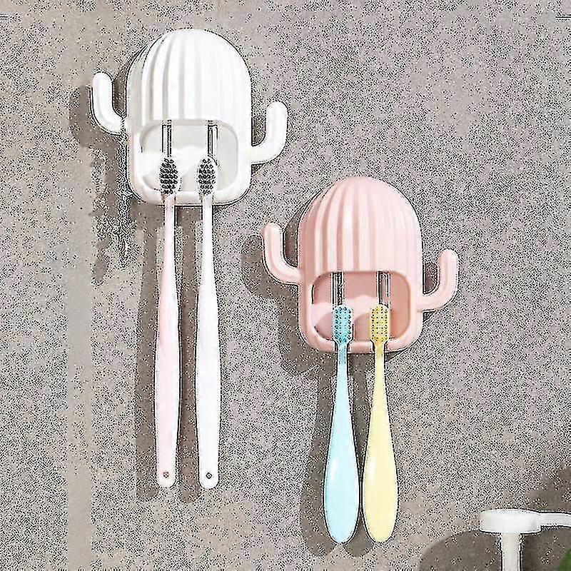2 Pcs Wall Mounted Bathroom Toothbrush Holder Cactus Shape Paste Without Punching *pink+white