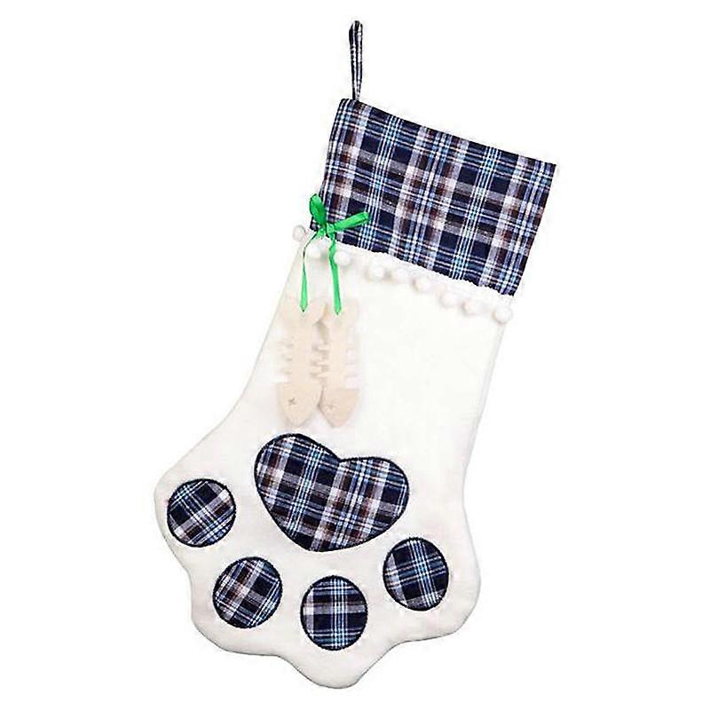 2 PCS Christmas Stockings Pet Paw Pattern Stockings Fireplace Hanging Stockings for Pets and Christmas Decoration