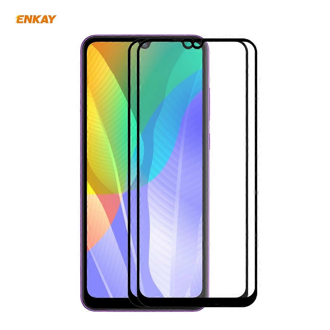 2 PCS ENKAY Hat-Prince Full Glue 0.26mm 9H 2.5D Tempered Glass Full Coverage Film For Huawei Y6p