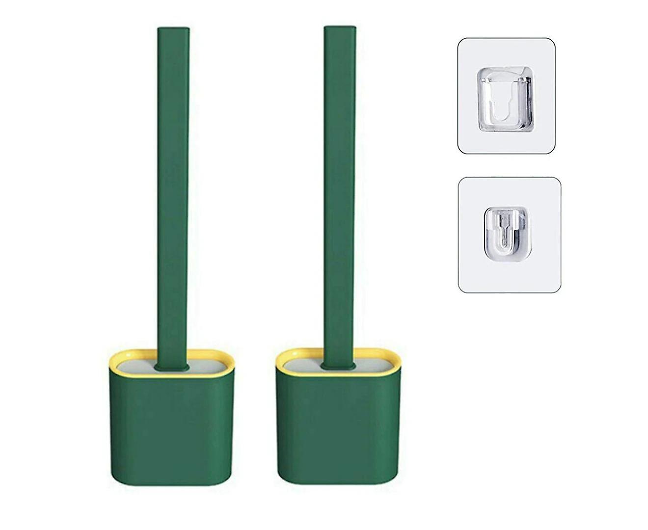 2 X Bathroom Silicone Bristles Toilet Brush Creative Cleaning Set with Holder Green