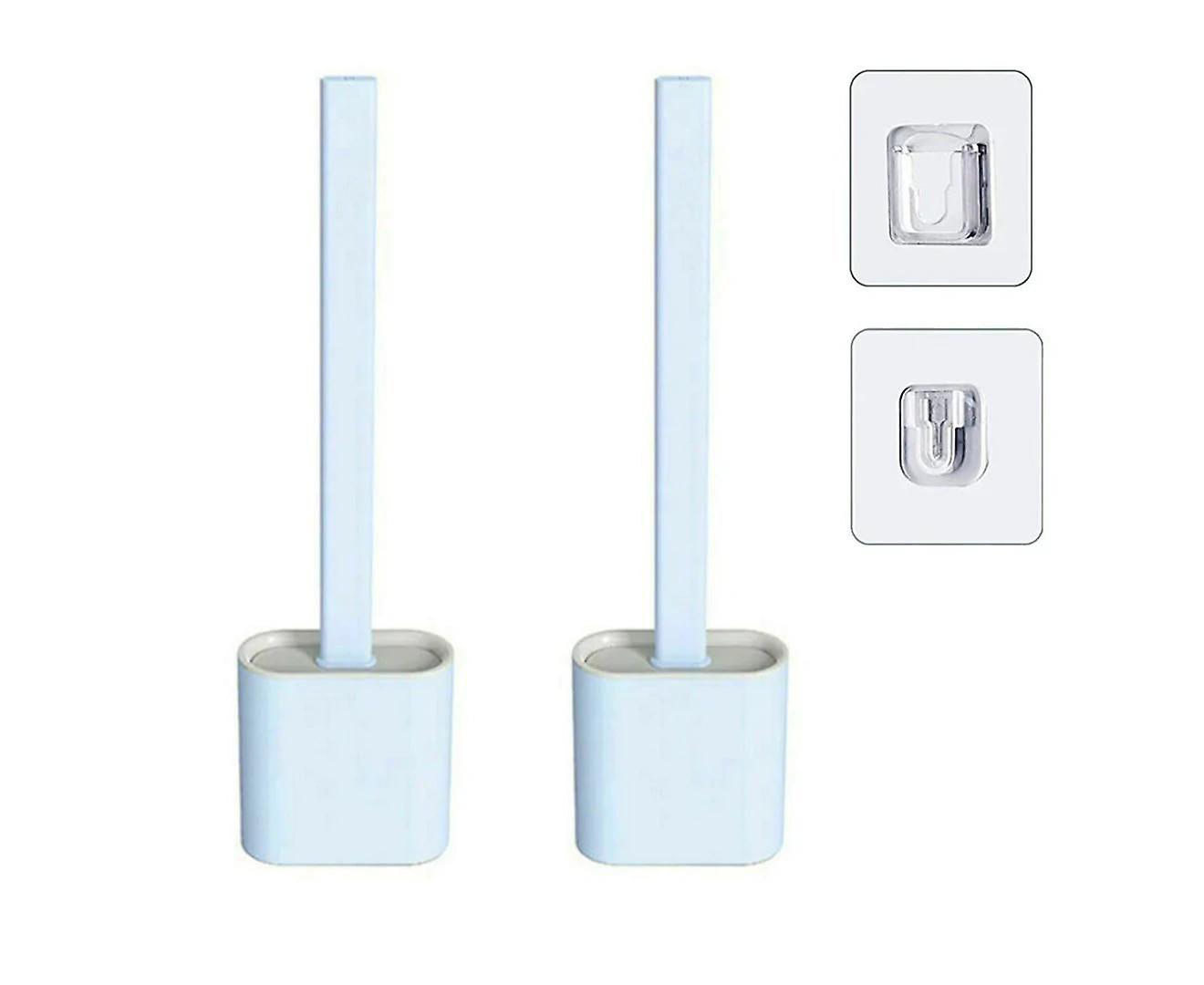 2 X Bathroom Silicone Bristles Toilet Brush Creative Cleaning Set with Holder Blue