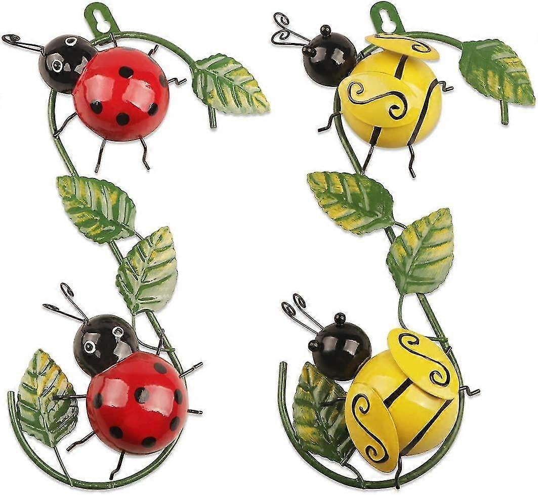 2 Pieces Metal Ladybug Wall Decor for Indoor or Outdoor Garden Fence Balcony Patio Living Room Bedro