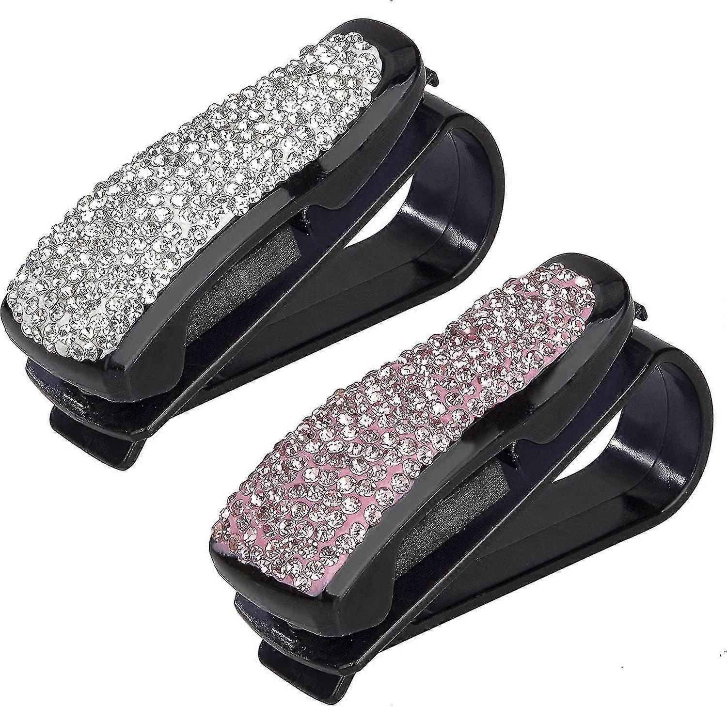 Car Glasses Holders Sunglasses Holder Clips With Bling Rhinestone Ticket Card Clips For Car Sun Visor Eyeglasses (white Pink)2pcs