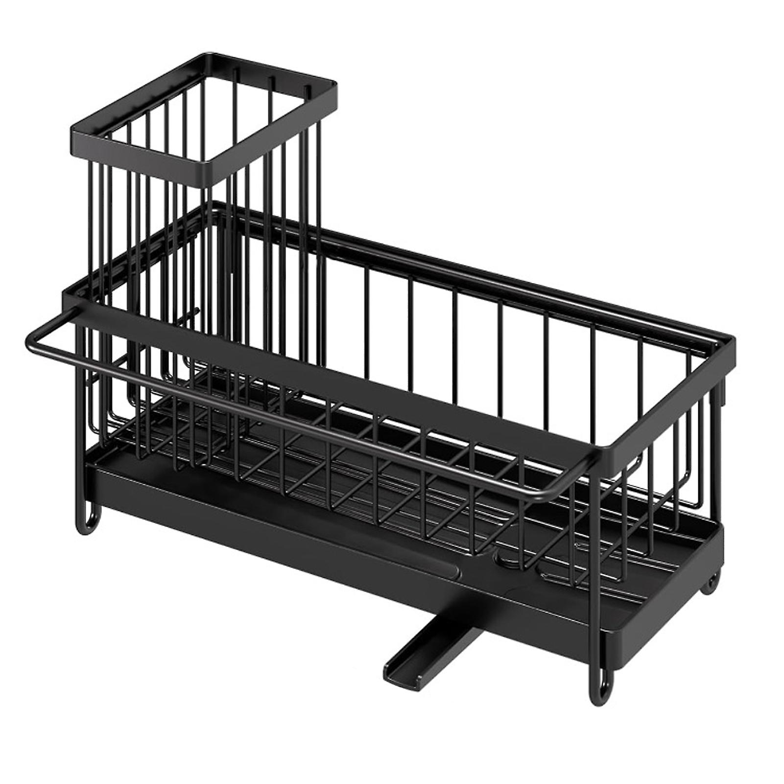 Kitchen Sponge Drain Rack with Drainage Tunnel Hollow Out Quick Drainage 2 Compartments Sponge Dish Rag Storage Basket Cleaning Brush Sink Organizer