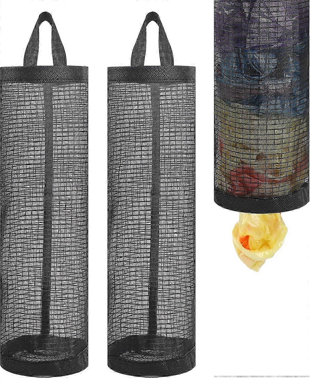 2Pcs Plastic Bag Holder,Grocery Bag Holder Mesh Hanging Storage Bag Dispenser Trash Bags,Folding Bag Storage Organizer Bag Dispenser for Home Kitchen