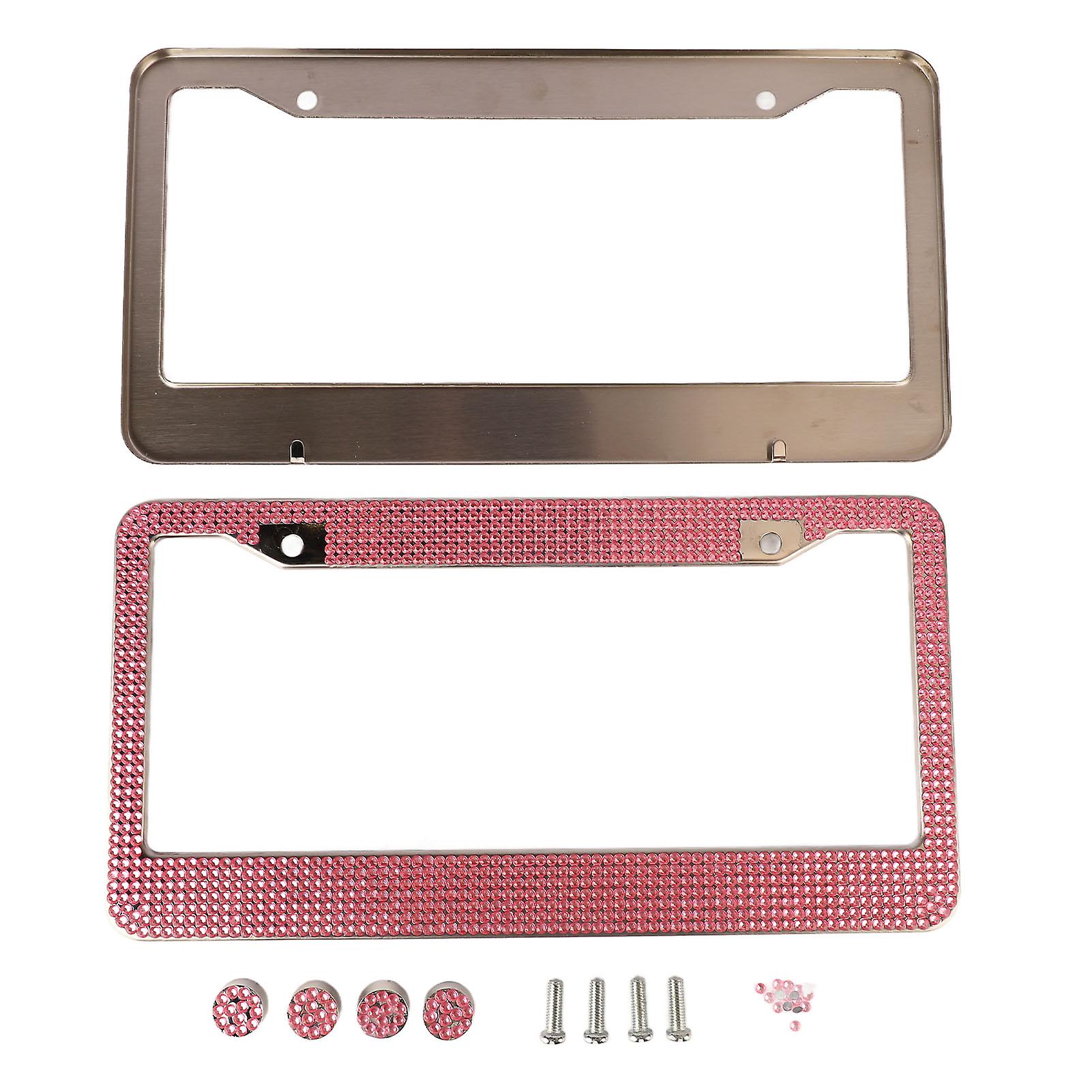 2pcs Bling License Plate Frame Covers License Plate Holder for Women with Pink Rhinestone
