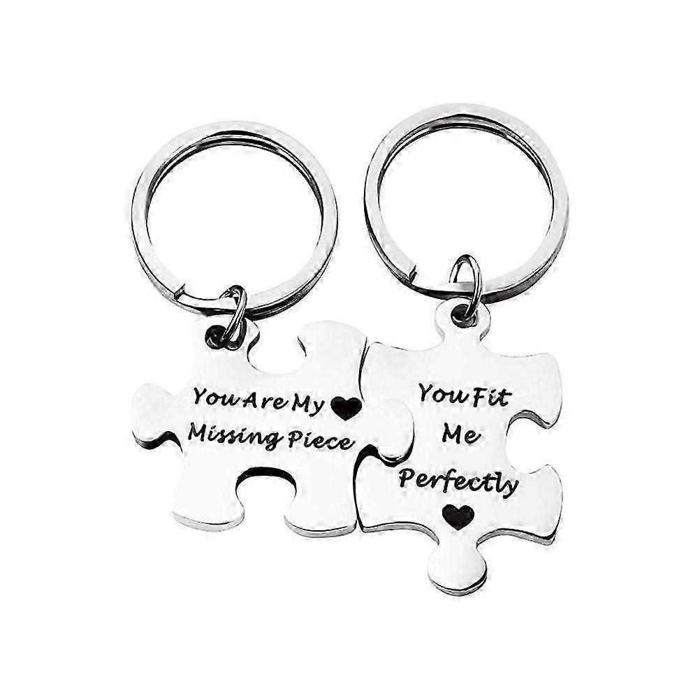 Creative Key Chain Stainless Steel Lovers Matching Puzzle Shape Decorative Anti Loss 2Pcs