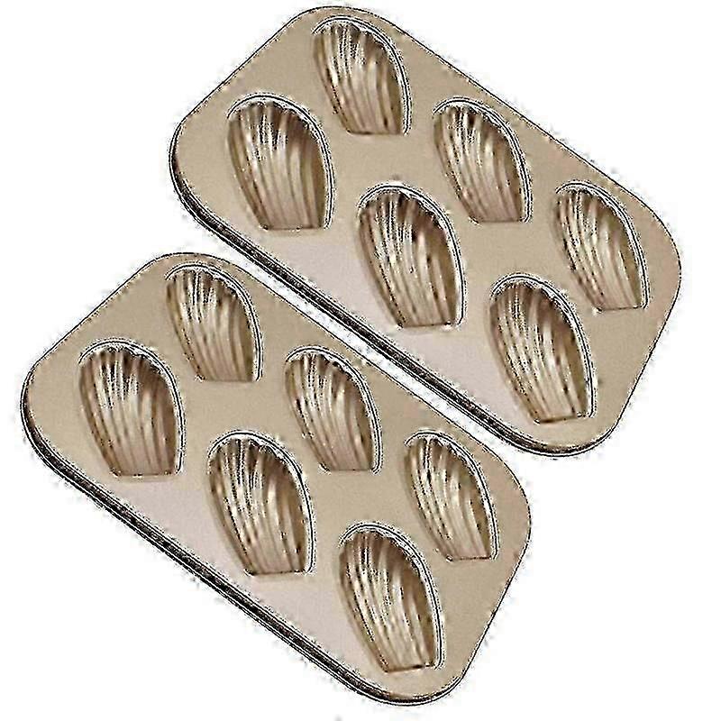 2 Pack Madeleine Mold Cake Pan, Non-Stick Heavy Duty Shell Madeline Bakeware for Oven Baking (Champagne Gold)