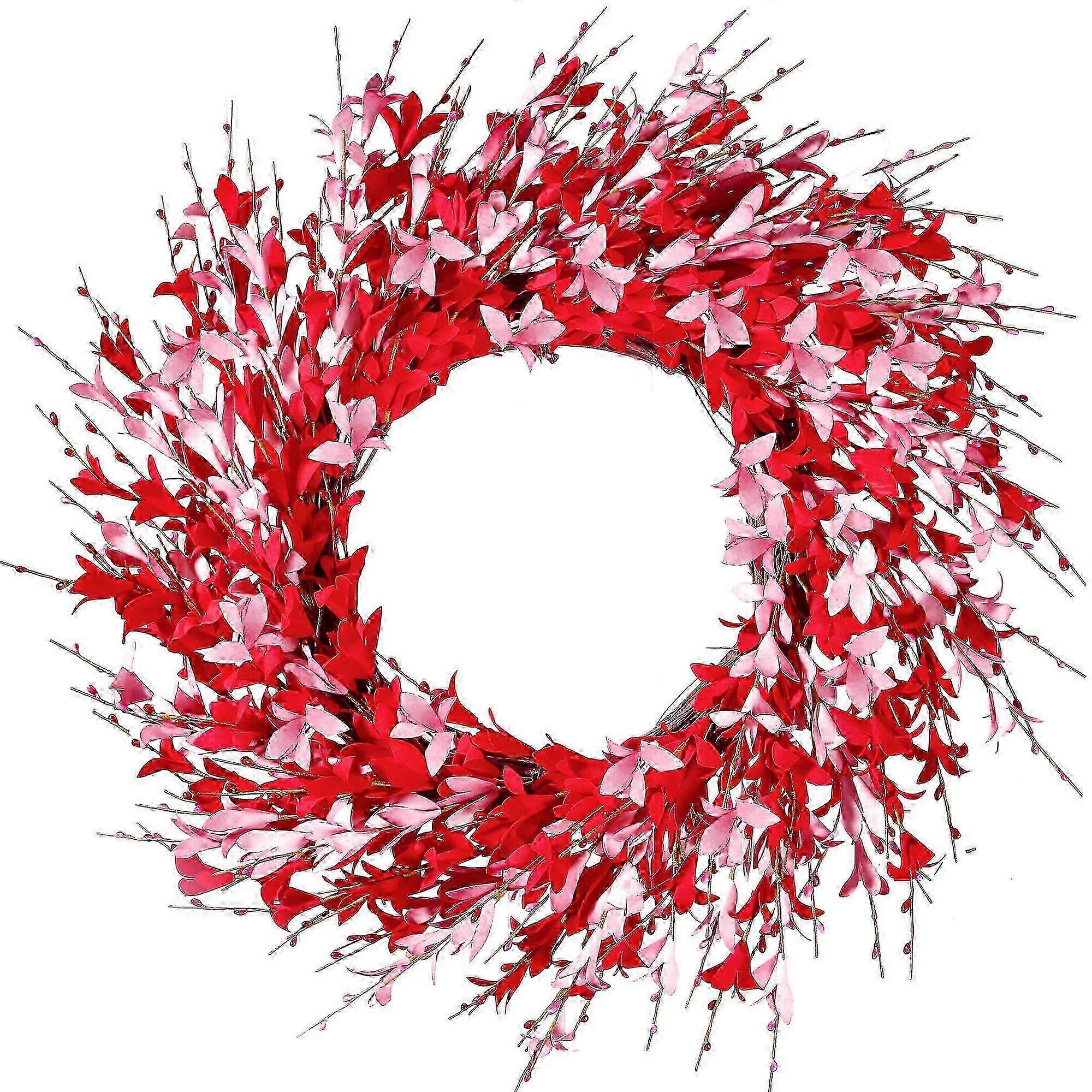 20 Inch Valentine’s Forsythia Wreath - Handmade Foam Flower Decor for Front Door & Spring Parties