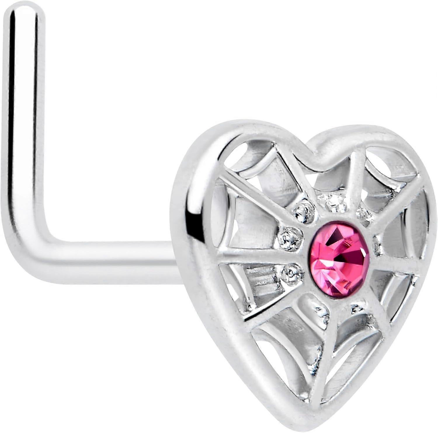 20 Gauge Nose Ring - 316L Stainless Steel L-Shape Nose Ring Spiderweb Heart Love
