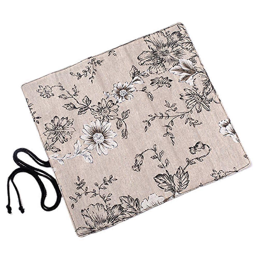 20 Slots Black Peony Printing Pen Bag Durable Canvas Stationery Holder Large-capacity Case Paint Brush Pens Tools Cosmetic Brush Roll Wrap