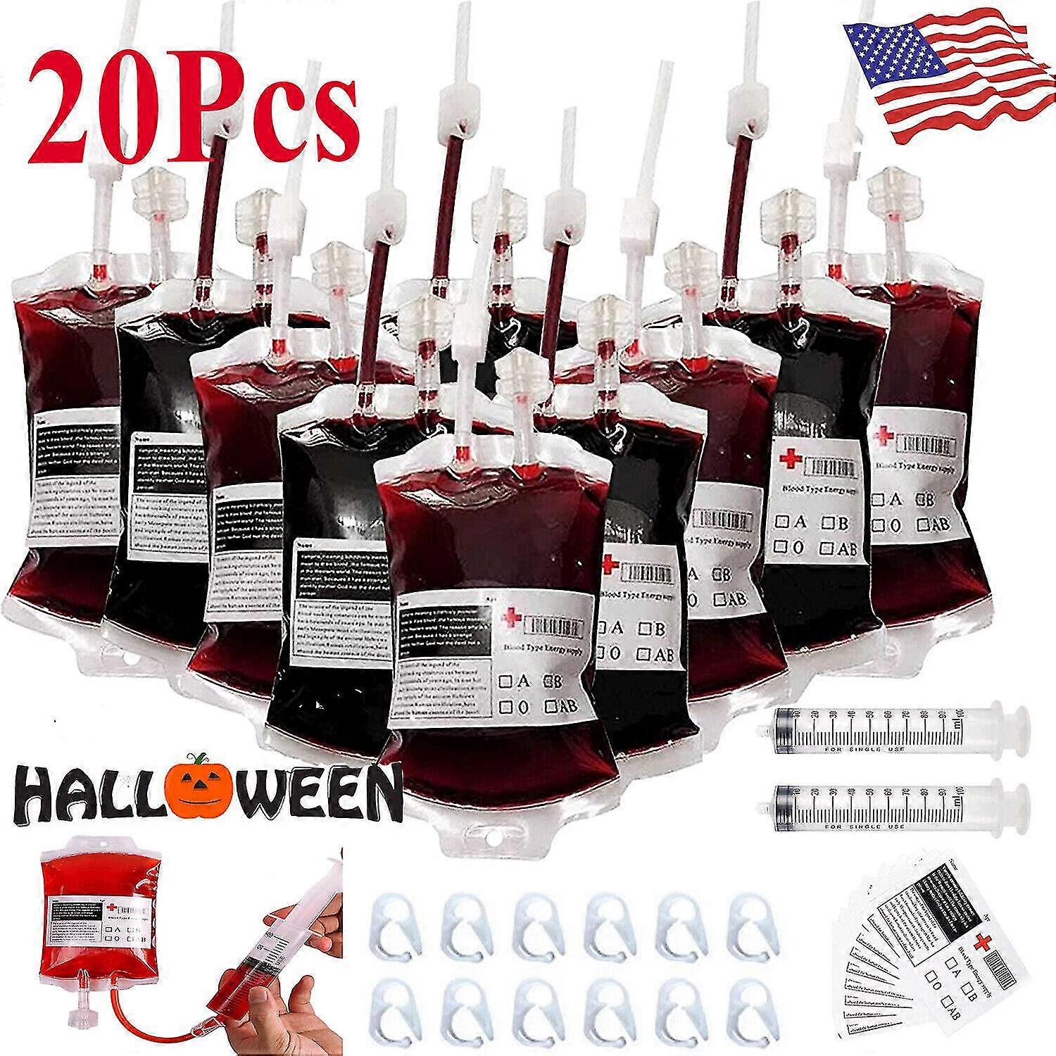 20 Set Reusable Halloween Blood Bags Vampire Cosplay Party Pouch With 2 Syringes