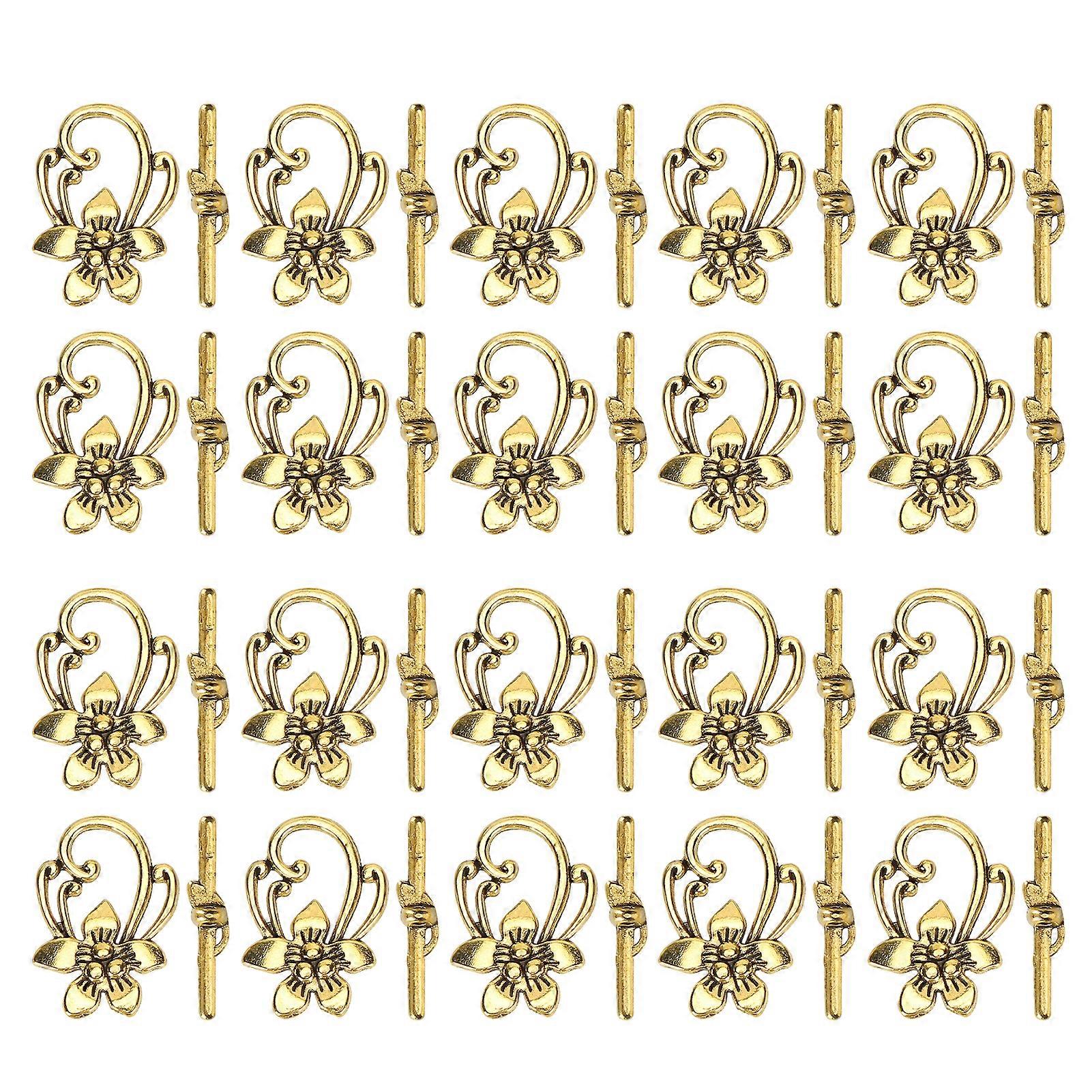 20 Sets Bracelet Toggle Clasp Gold Retro Alloy Flower Shape OT Buckle Jewelry Accessories