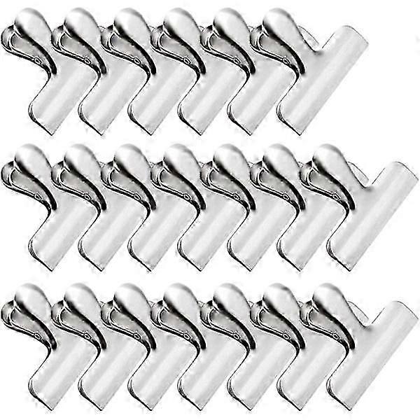 Crafted from durable stainless steel: These large and heavy-duty clips (20 pieces, 3 inches wide) feature a powerful spring. Dustproof and rustproof, they're built to last and won't break easily, unlike plastic clips. Tight seal: Each clip has a built-in elastic spring for extra clamping force, ensuring a tight seal. Protect your food from air and moisture by keeping bags completely closed, preventing freezer burn and spoilage, keeping your food fresher for longer. Multi-purpose: Use them not only in your kitchen but also in your office, garage, shed, or anywhere you need a reliable clip! Perfect for snack bags, potato chip bags, cereal bags, cookie packages, bread, beans, coffee bags, frozen food, spices, office paper clips, and more. Note: The edges and corners of these chip clips have some sharp points, please keep them out of reach of children. You can combine them with magnets, sticky pads, and other adhesives for even more creative uses. Best service: If you have .