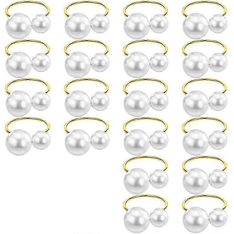 20pack Pearl Napkin Rings Set Gold Napkin Buckles Metal Holiday Napkin Rings Holders Buckles For Ta-YUHAO