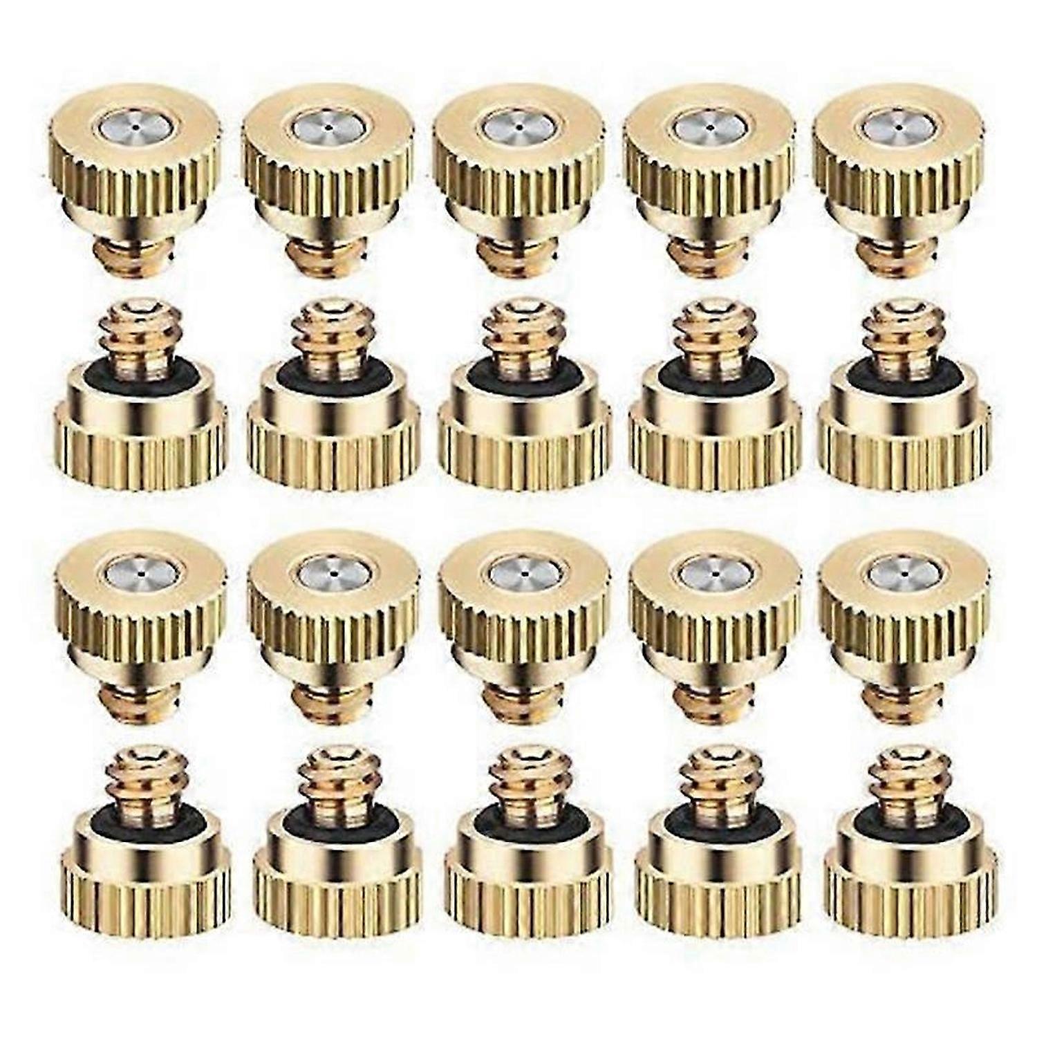 Brass / SS 0.012 inches (0.3 mm) orifice, easily screw into any 10/ 24 UNC threaded mist nozzle opening BEST CHOICE FOR OUTDOOR USE WITH COULD WATER: Widely apply for landscaping, outdoor cooling system, greenhouse, humidification, spraying disinfectant, epidemic prevention, deodorant air purification, small fountain, etc Operation Pressure: 20-70kg/cm; Flow Rate: 80-145ml/Min Minimal Water Use: 1/2 Gallon of water per hour per nozzle Leak-proof, self-sealing o-ring included with each nozzle, easy to install<br><br>Colour:Brass color Material:Brass Size:1*0.5cm<br><br>Package Contents: 20 * Sprinkler<br><br>Only the above package content, other products are not included. Note: Light reflection and different displays may cause the color of the item in the picture a little different from the real thing. The measurement allowed error is +/- 1-3cm.