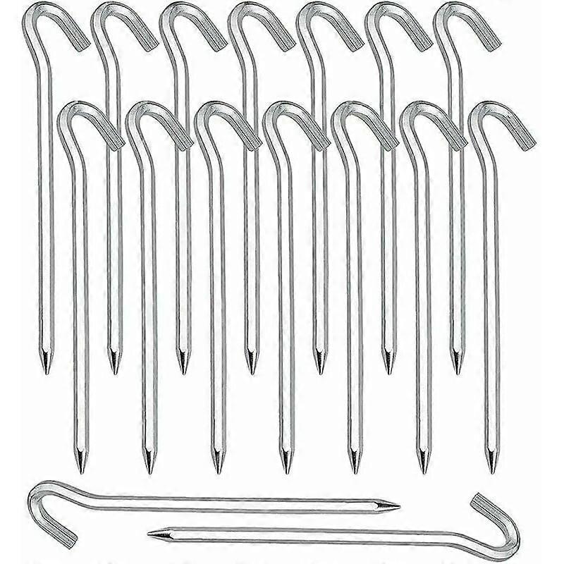 20 Pieces Tent Stakes Ground Stakes Tent Hook Camping Gardening Galvanized Steel Tent Peg Silver