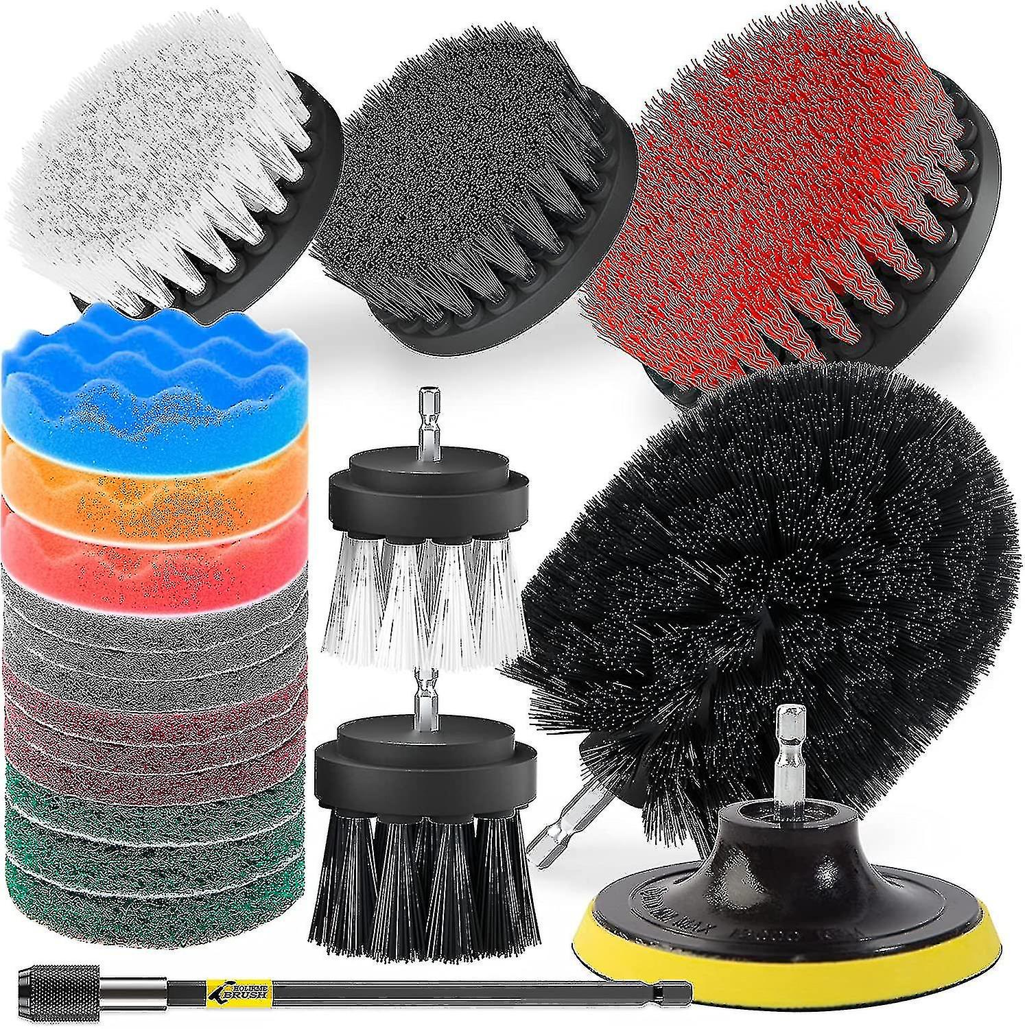 20piece Drill Brush Attachments Set,black Scrub Pads Sponge, Power Scrubber Brush With Extend Long Attachment All Purpose Clean For Grout, Tiles, Si