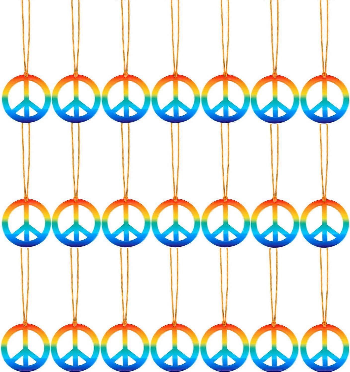 20 Pieces Rainbow Peace Sign Pedants Necklaces Set 60s 70s Hippie Costume Accessories for Women Men
