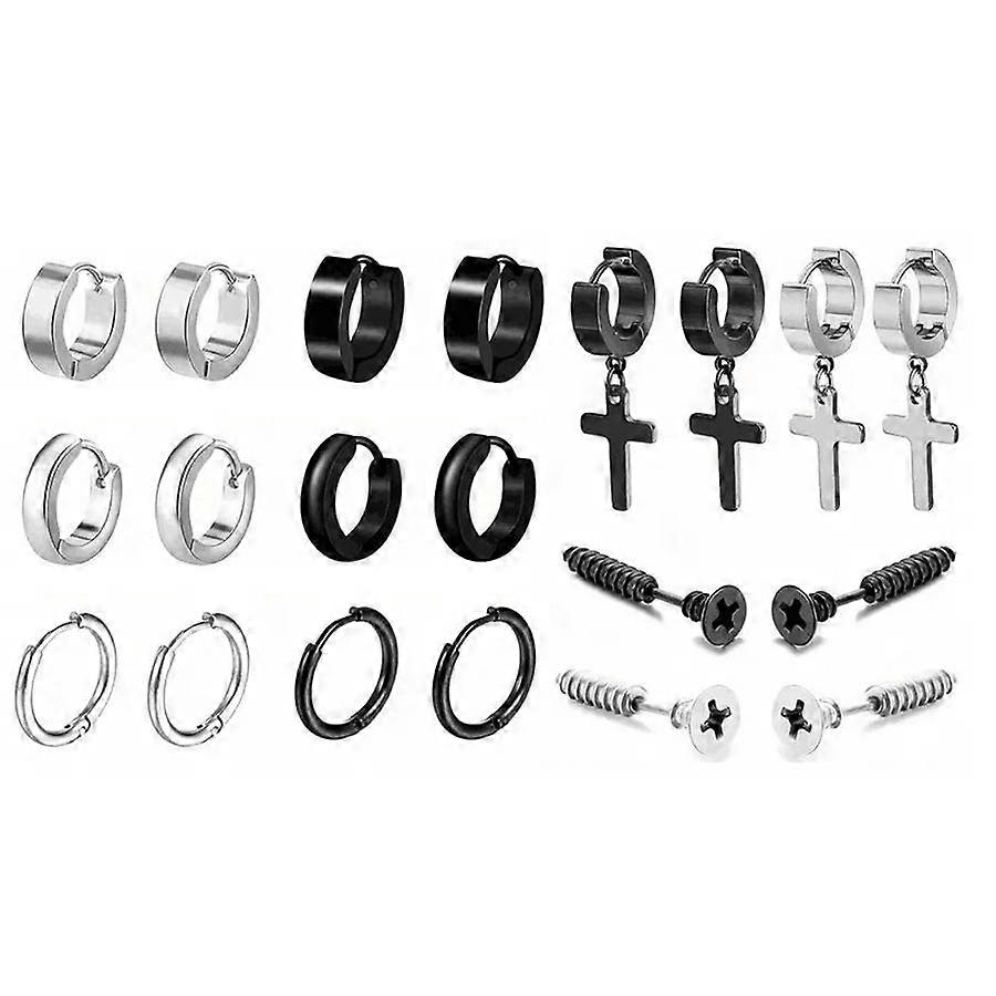 20 Pairs Stainless Steel Zirconia Stud Earrings for Men Cross Dangle Earrings for Daily Wear Punk Style Unisex