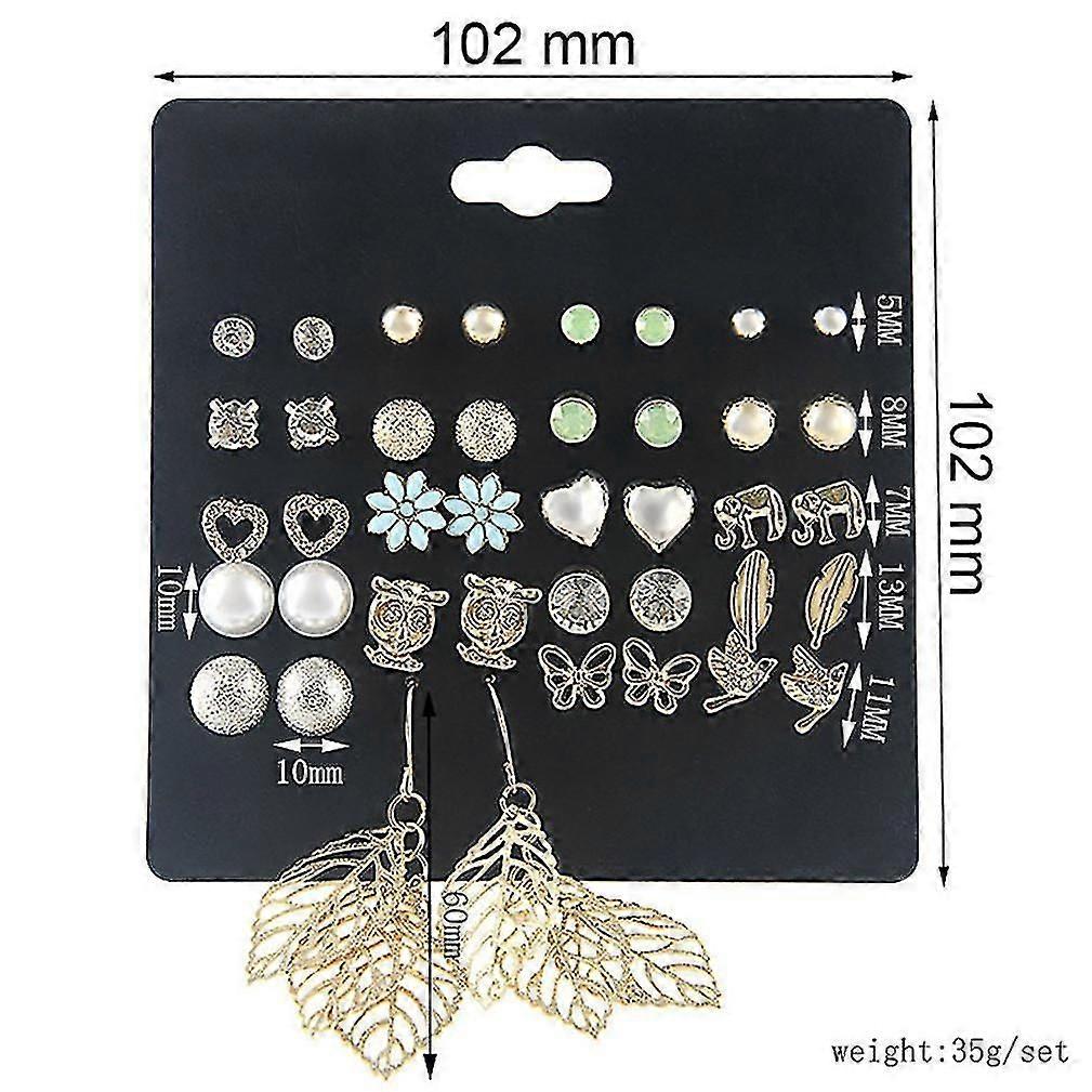 20 Pairs Earrings Set Butterfly Heart Owl Elephant Zircon Jewelry For Wedding