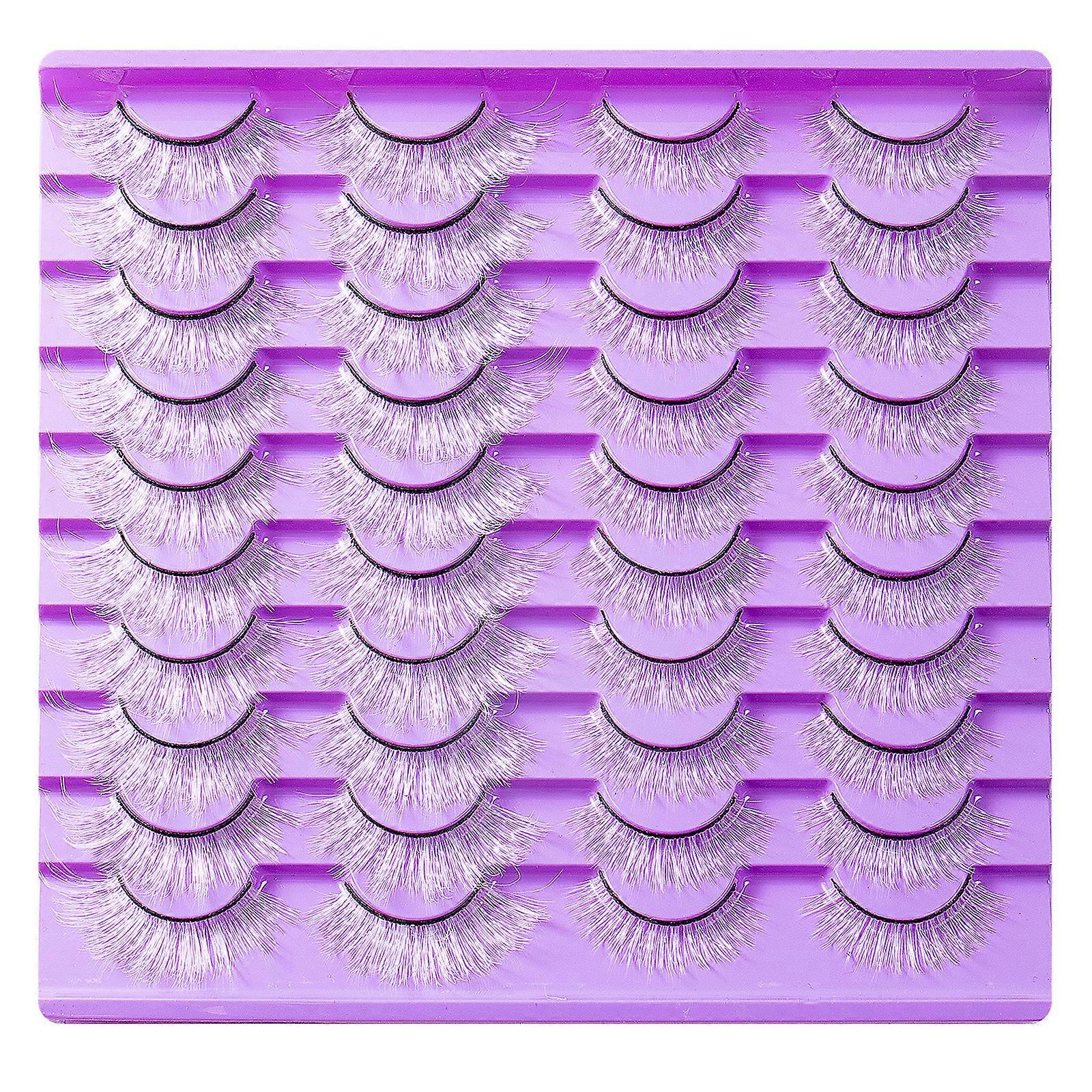 20Pair White Lashes Halloween White False Eyelashes Wispy Cosplay Makeup Eye Lashes Masquerade Party Christmas Eyelashes