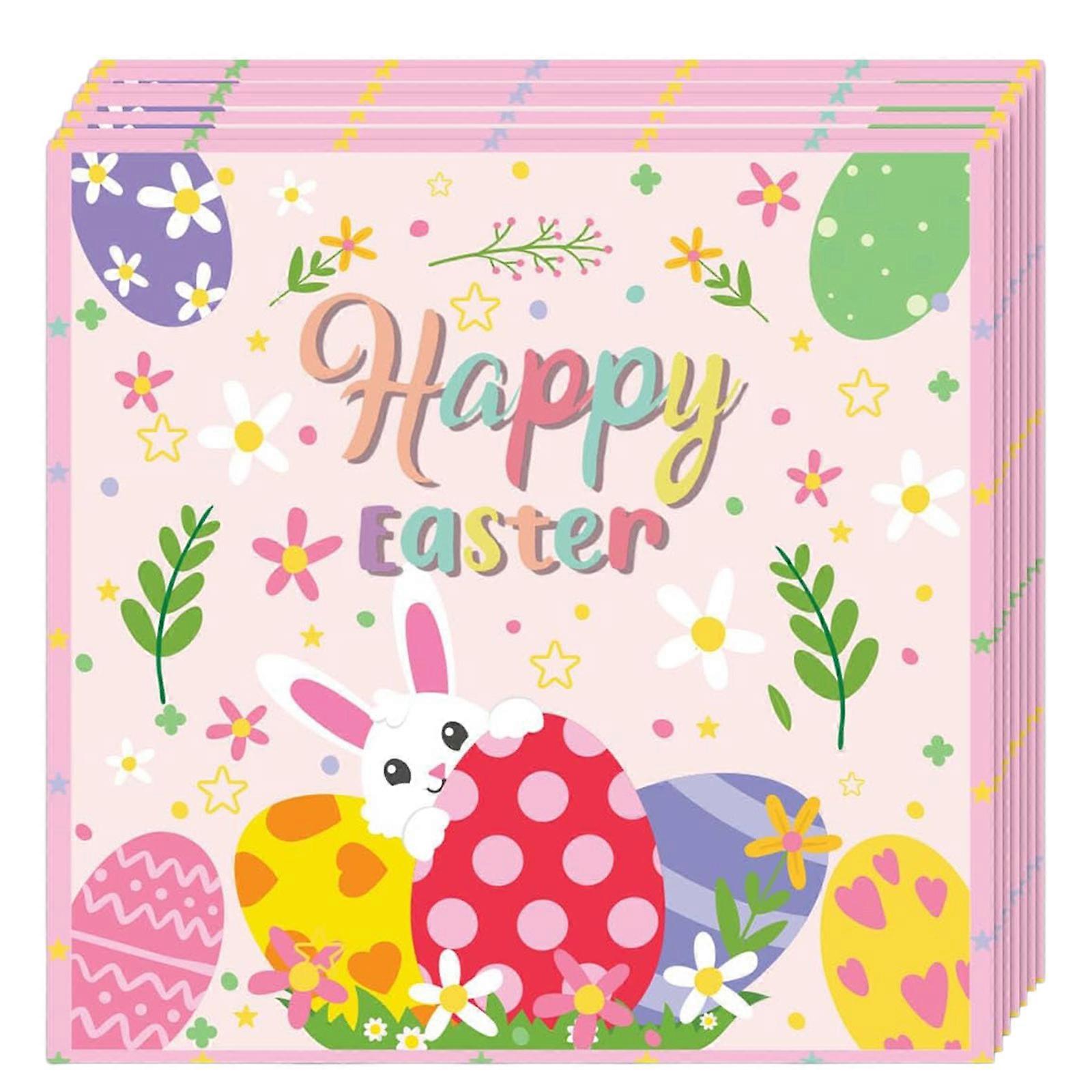 20Pcs Easter Paper Towel Heavy Duty Easter Dinnerware With Easter Eggs Bunny For Spring Holiday Easter Party Supplies Disposable Paper Towel