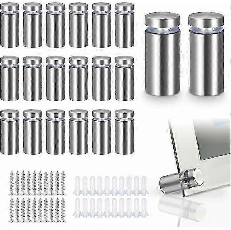20 Pcs Glass Spacer, Stainless Steel Wall Mount for Advertising Nails, for Plaques and Sign Displays (Silver)12mmx20mm