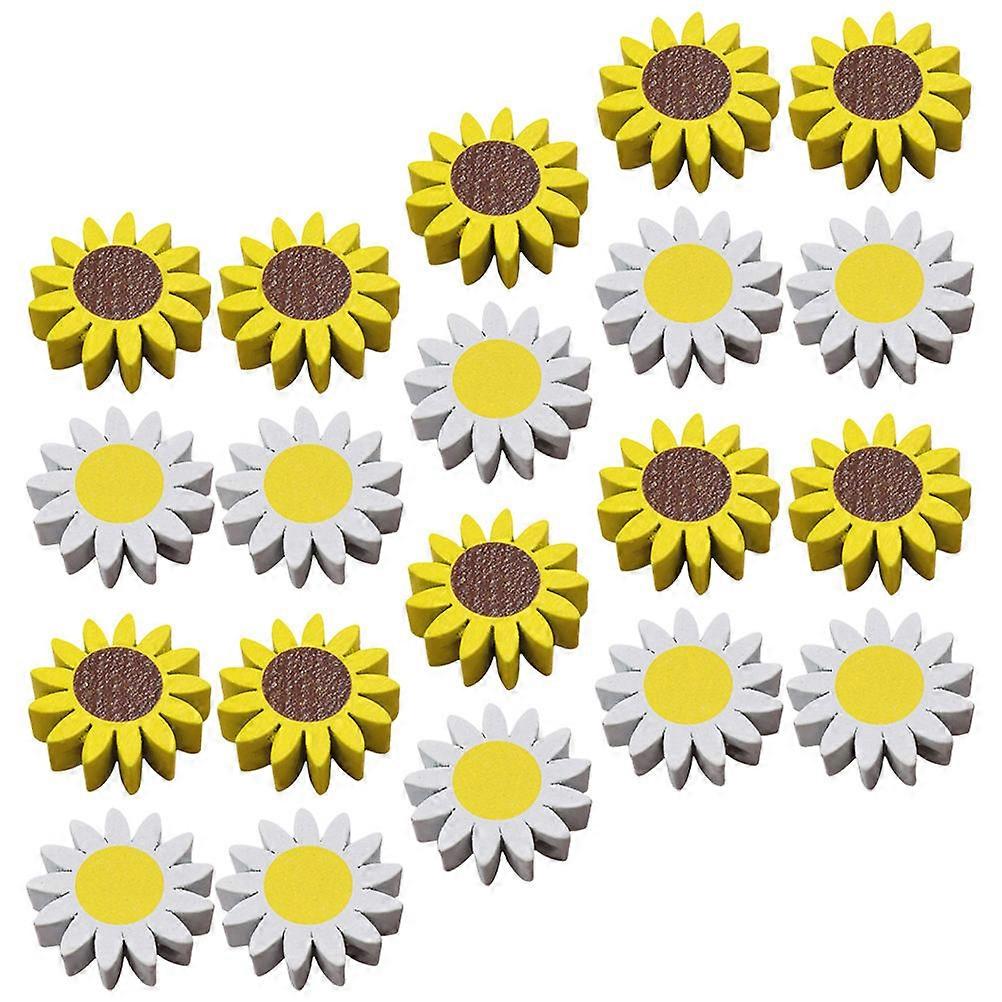 20pcs Daisy Shaped Wooden Beads for DIY Crafts Natural Loose Beads Bulk White Yellow Jewelry Decoration