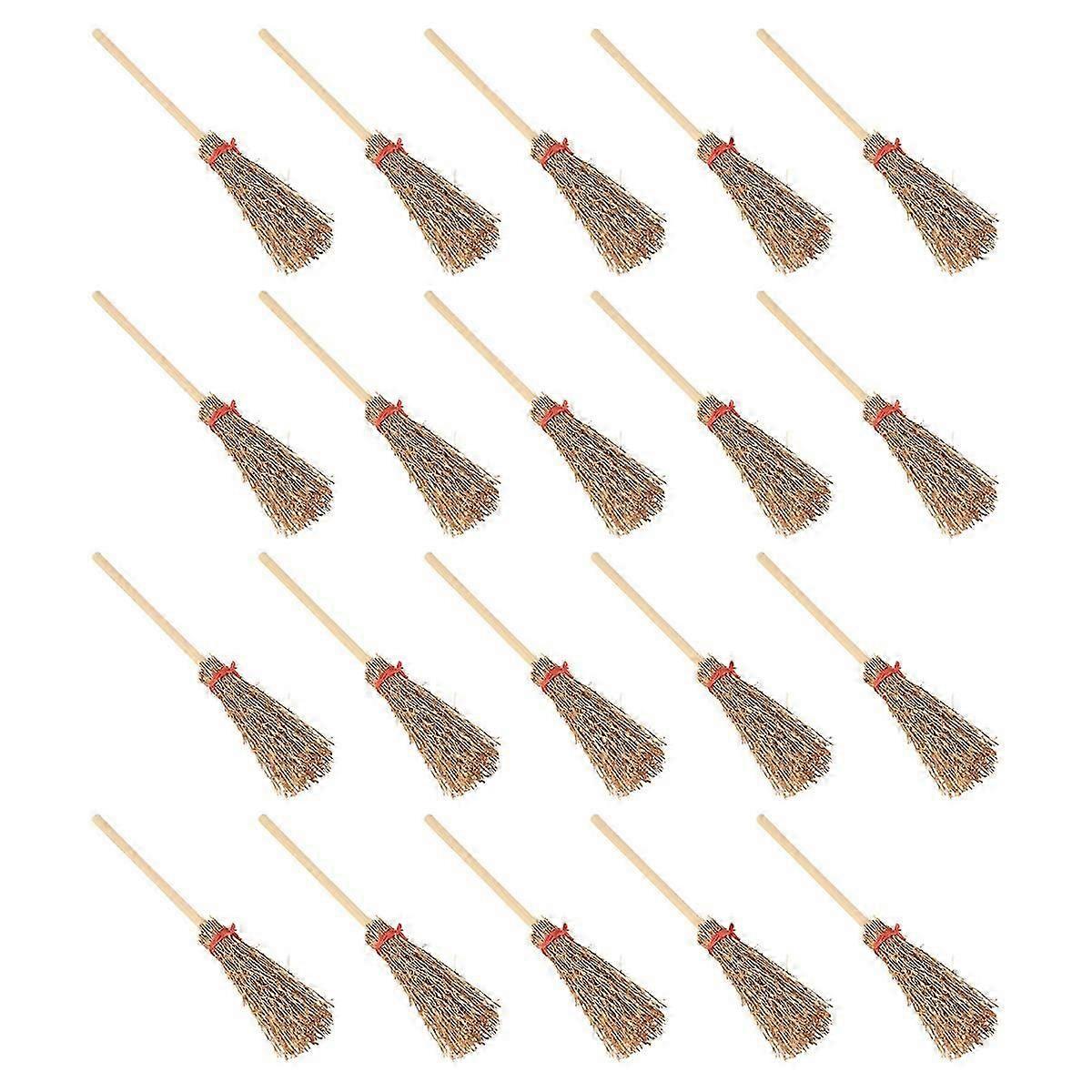 20Pcs Miniature Artificial Mini Straw Brooms with Red Ropes Halloween Straw Dollhouse Decoration Wit