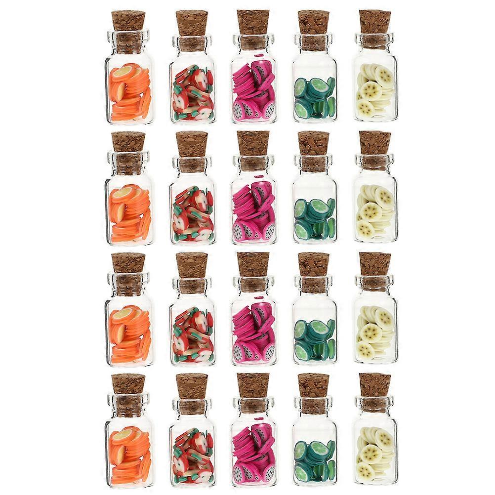 20pcs Mini Fruit Jars Glass Kitchen Ornaments for Dollhouse Decor with Assorted Fruits Bananas Lemons Dragon Fruit Oranges Apples for Creative Play