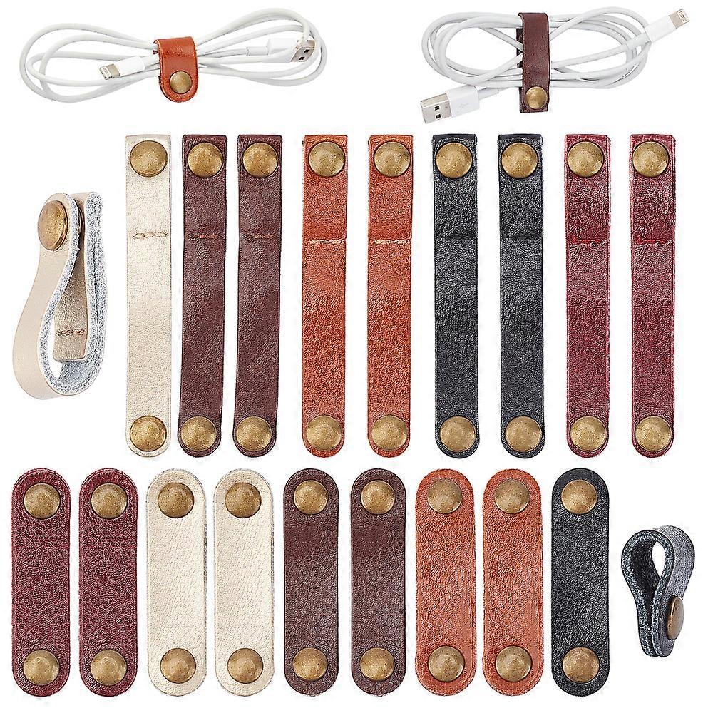 20 Pcs Leather Cable Straps Cable Ties Cable Organizers Cord Management for USB Cable Headphone Wires 2 Sizes 5 Colors DIY