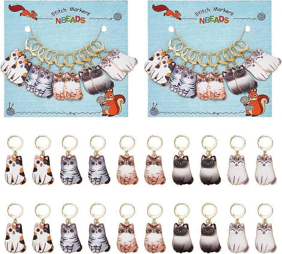 20 Pcs Kitten Stitch Markers 304 Stainless Steel Clasps Locking Stitch Marker Cat Enamel Alloy Crochet Stitch Marker for Knitting Weaving Sewing Jewel